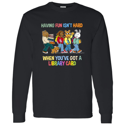Having Fun Isn't Hard When You've Got A Library Card Teacher G540 LS T-Shirt 5.3 oz. - hoangocanh
