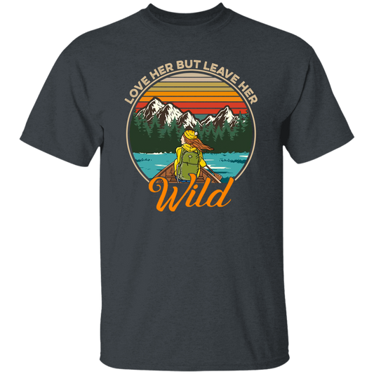 Love Her But Leave Her Wild Retro Vintage Girl in Nature T-Shirt, Girl Camping Gifts Shirt, Nature Lover Shirt, Gift For Camper G500 Gildan 5.3 oz. T-Shirt