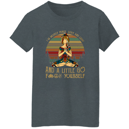 Yoga Im Mostly Peace Love And Light And A Little Go Fuck Yourself T-Shirt - WOMEN