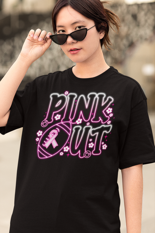 Neon Breast Cancer Football Pink Vintage T-Shirt