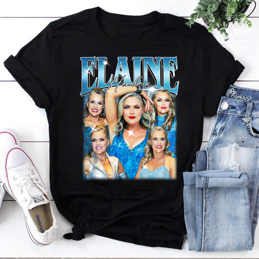 Elaine Hendrix Blue Glamour Collage Shirt - Retro Style Women’s Graphic Tee
