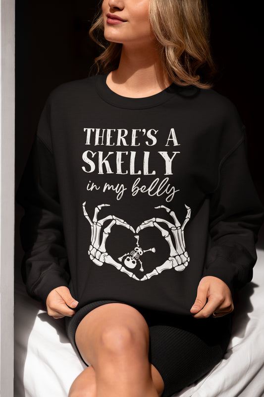 There's A Skelly In My Belly Halloween Pregnancy Shirt