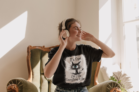 It's Fine I'm Fine Everything Is Fine Funny Cat Vintage T-Shirt