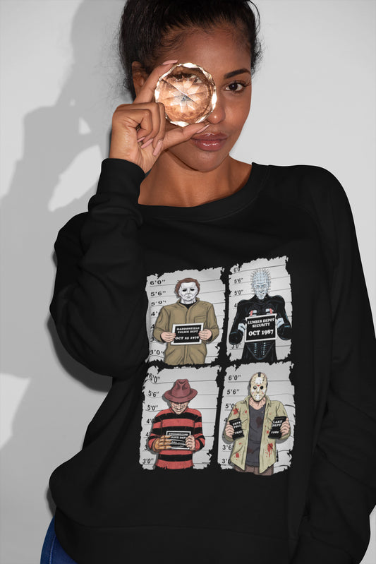 Horror Mugshot Horror Movie Characters Halloween Spooky 80s Unisex T-Shirt