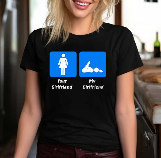 Funny Your Girlfriend vs My Girlfriend Graphic T-Shirt - Humorous Comparison Tee