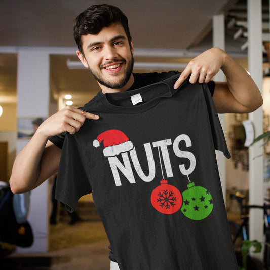 Funny Christmas Nuts Holiday T-Shirt with Santa Hat and Ornaments