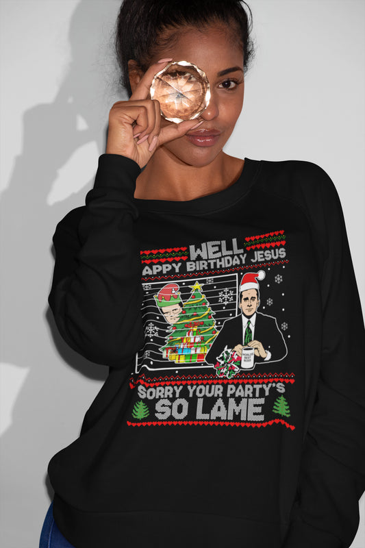 Funny Well Happy Birthday Jesus Christmas Shirt - Sorry Your Party's So Lame Ugly Sweater Tee