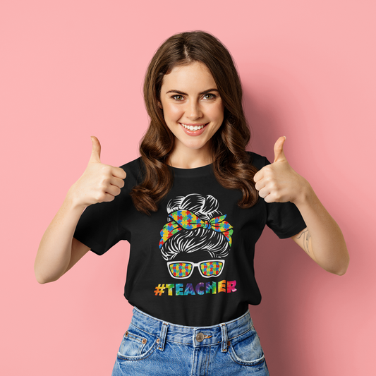 Autism Shirts For Teachers Messy Bun Sunglasses Bandana Mother Day Vintage T-Shirt