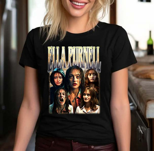 Ella Purnell Character Collage T-Shirt - Horror Movie Fan Tee in Black