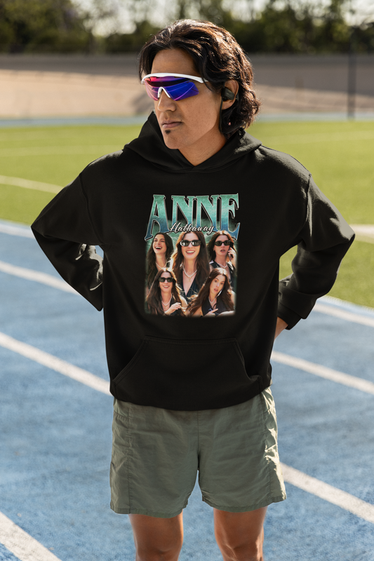 Anne Hathaway Collage Black Graphic T-Shirt - Fun Celebrity Photo Tee