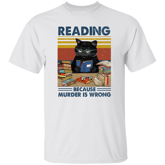 Reading Because Murder Is Wrong Teach T-Shirt, Funny Cat Book Shirt, Librarians T-Shirt, Book Club Gift, Retro Cat Lover Shirt, Bookworm