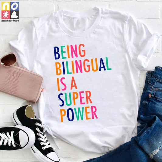 Being Bilingual Is A Super Power Teacher T-Shirt