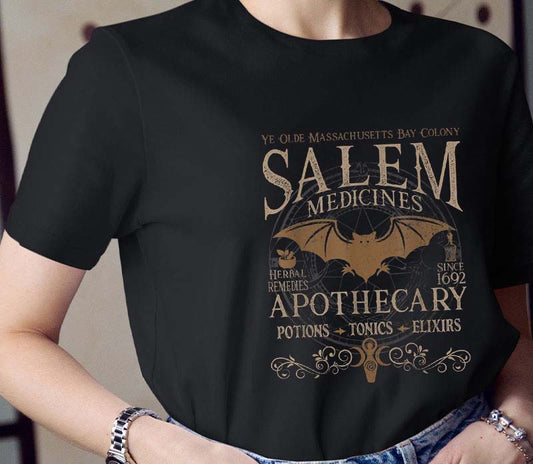 Salem Medicines Apothecary T-Shirt Historical Witchy Vintage Herbal Remedies Tee
