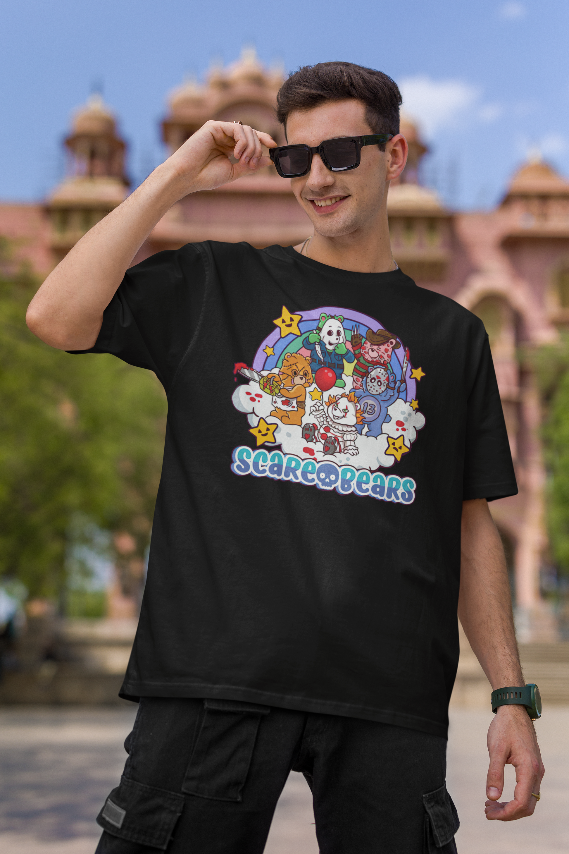 Scary Care Scare Bears Funny Halloween Horror Faces Custome Vintage T-Shirt