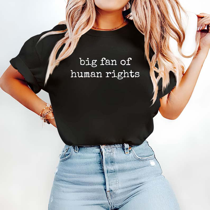 Celebrate your passion for equality and justice with this cozy, black hoodie that reads "big fan of human rights" in a clean, typewriter-style font. Perfect for activists, allies, and anyone who wants to wear their values proudly.