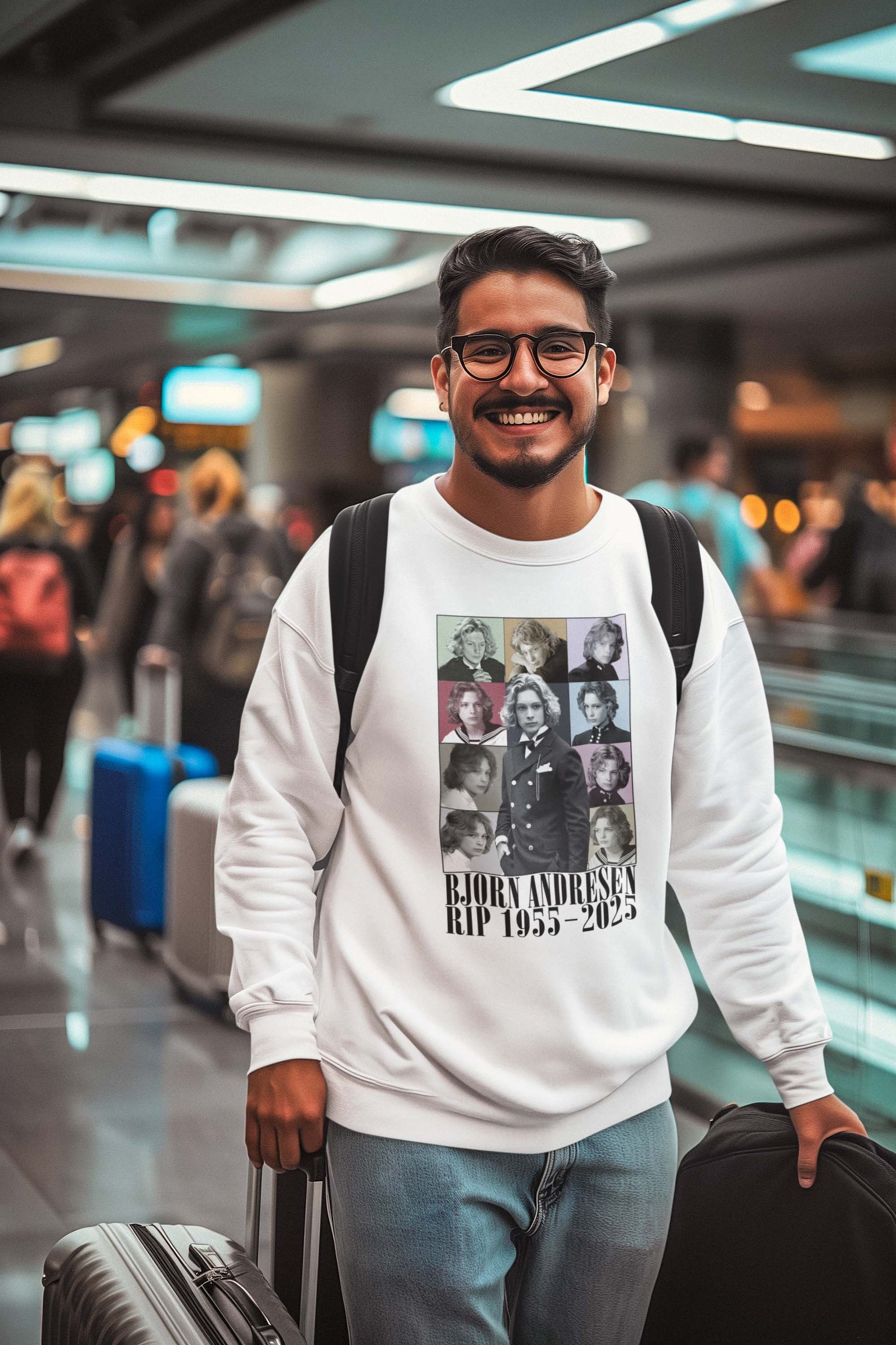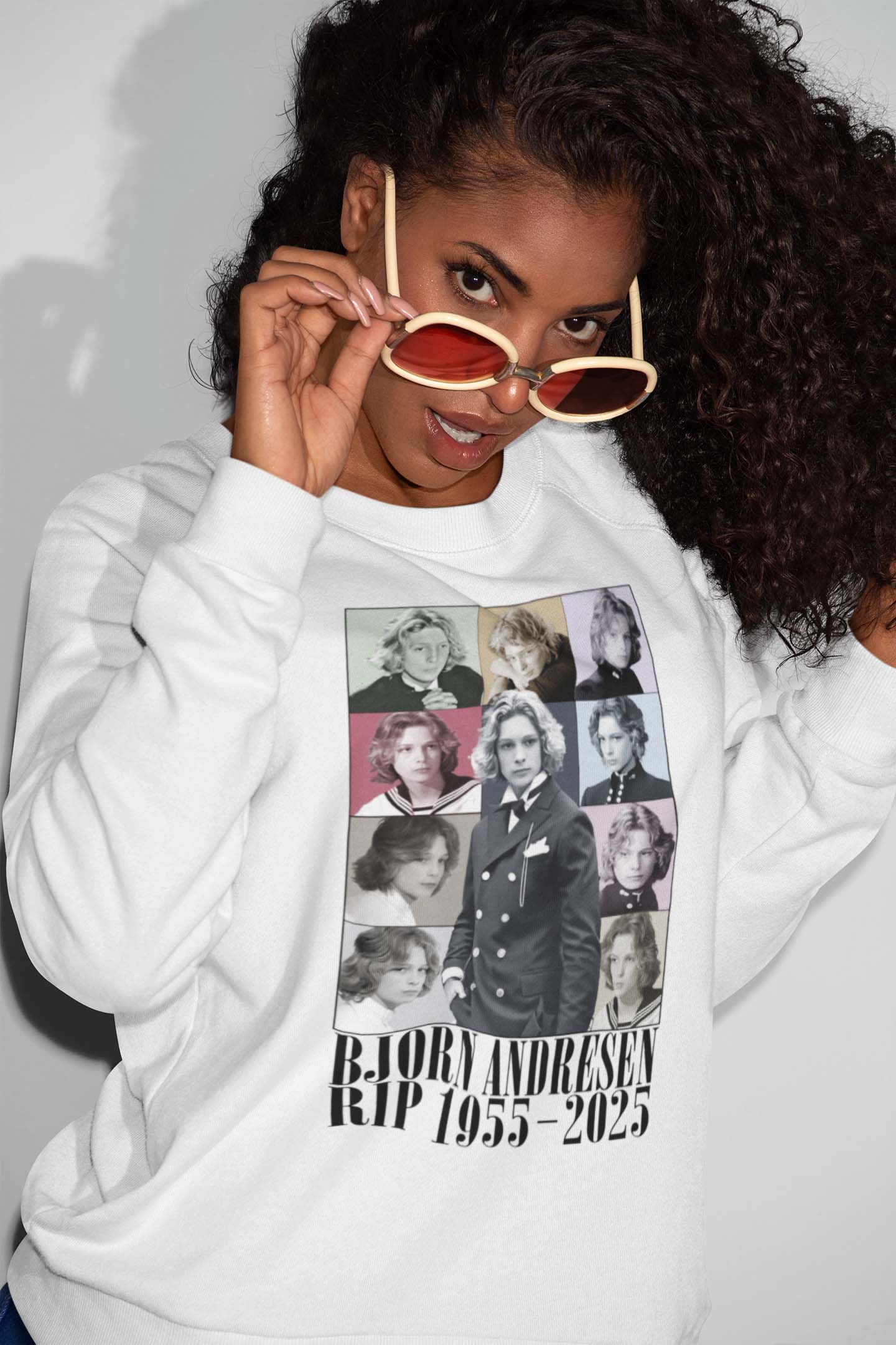 This shirt captures the essence of Bjorn Andresen's timeless charm and legacy with artistic photo blocks that draw attention and start conversations. Whether for personal nostalgia or as a meaningful gift, this tee celebrates a beloved personality with style and respect.