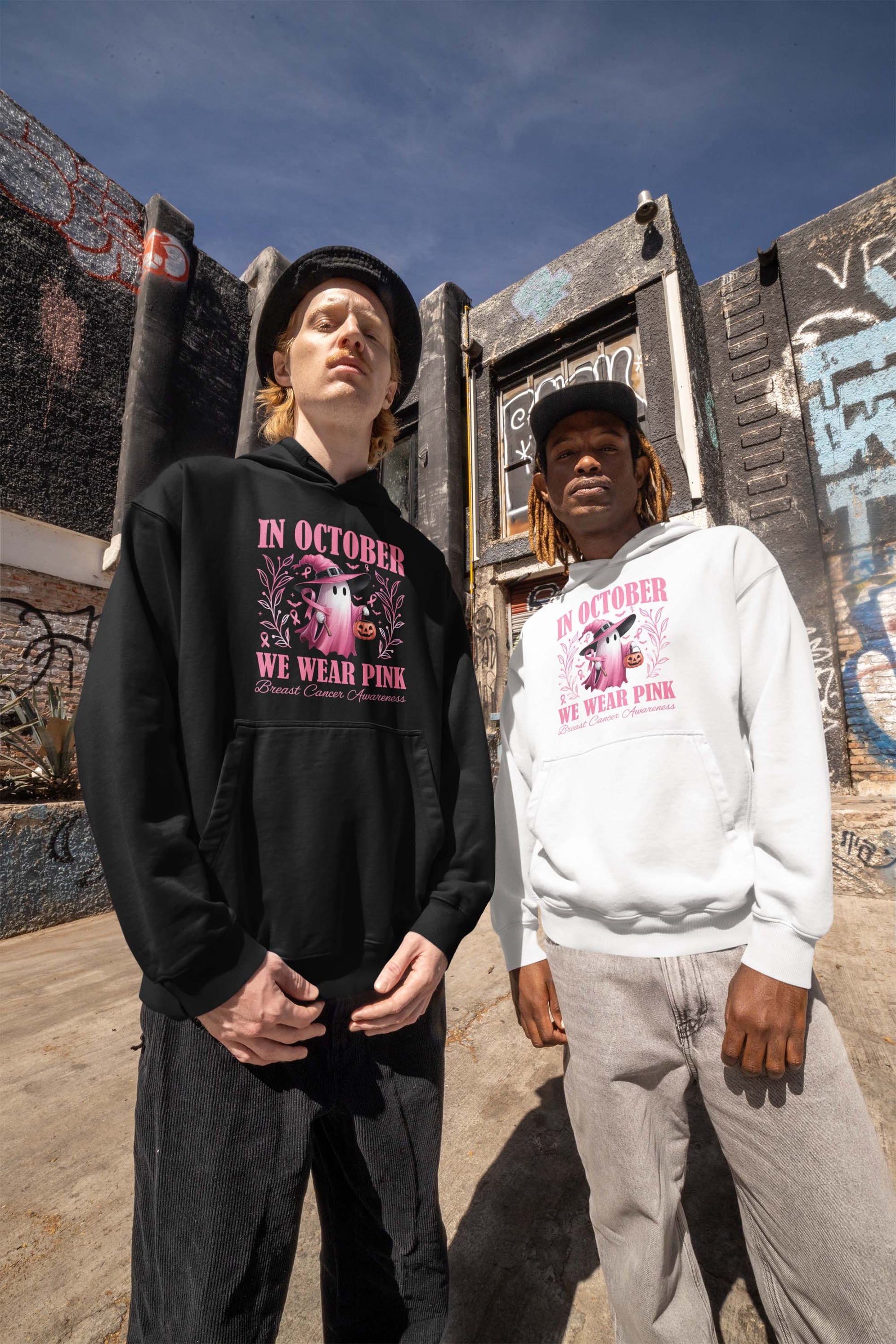 - Meaningful Design: The pink ghost witch illustration with breast cancer ribbons highlights hope, strength, and support during October’s Breast Cancer Awareness month.
