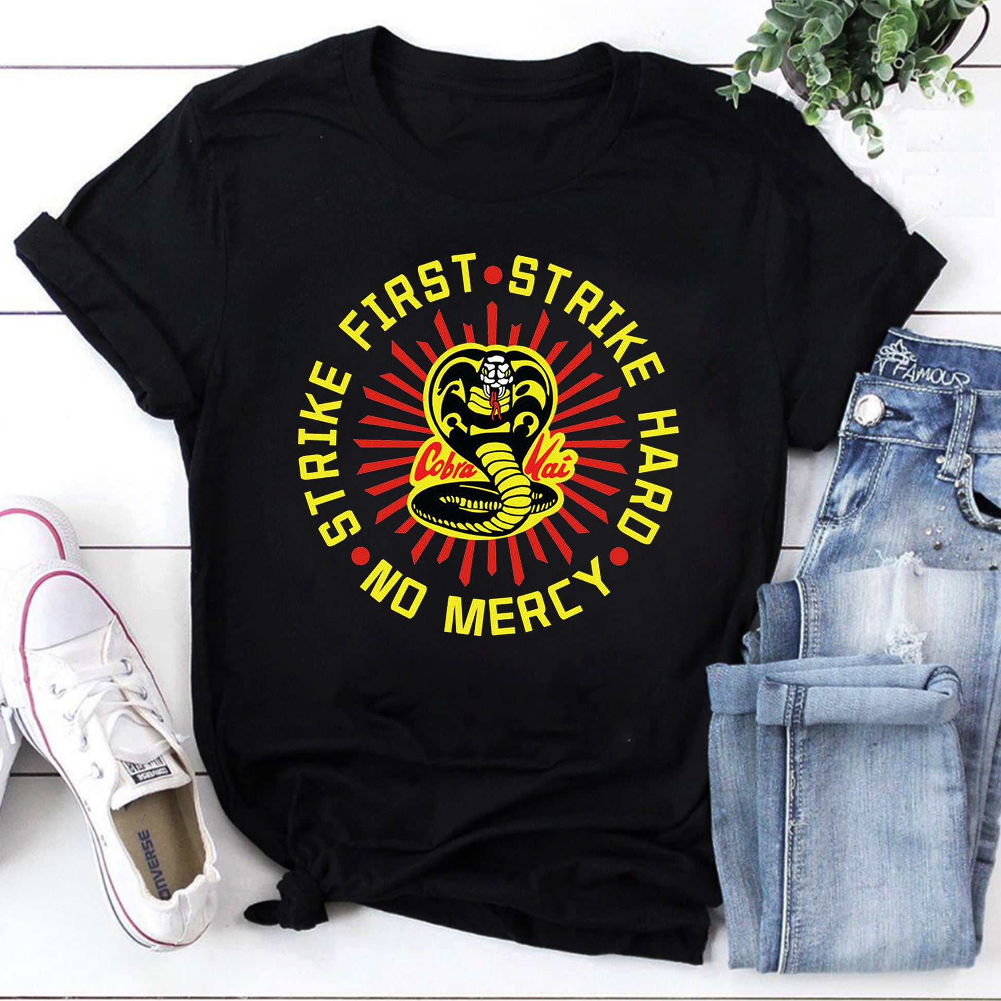Cobra Kai T-shirt Strike First Strike Hard No Mercy Martial Arts Tee