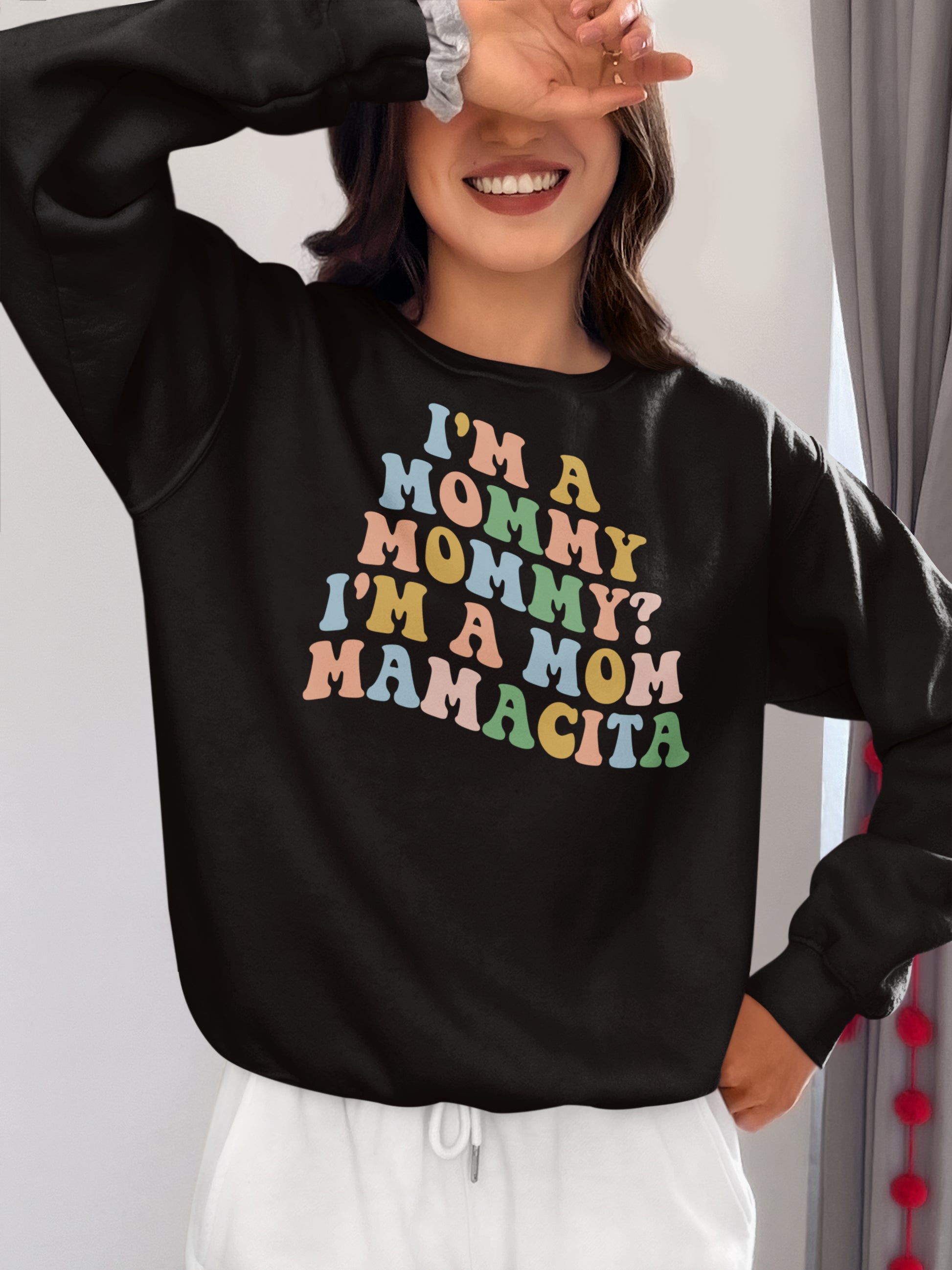 This vibrant and playful t-shirt is perfect for moms who want to showcase their love and pride. Featuring the message 'I'm a Mommy, Mom, Mamá, Mamaciá, Momie, Mama, Mamá Cita' in cheerful, multicolored letters, it's a fun way to express your role and brighten up your wardrobe.