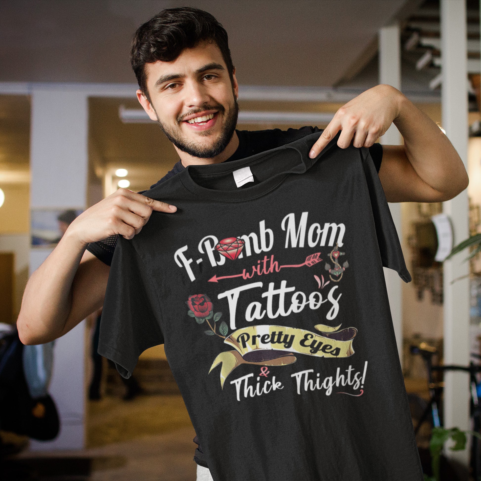 Wear your attitude proudly and let the world know you’re a F-Bomb Mom with Tattoos, Pretty Eyes, & Thick Thighs!