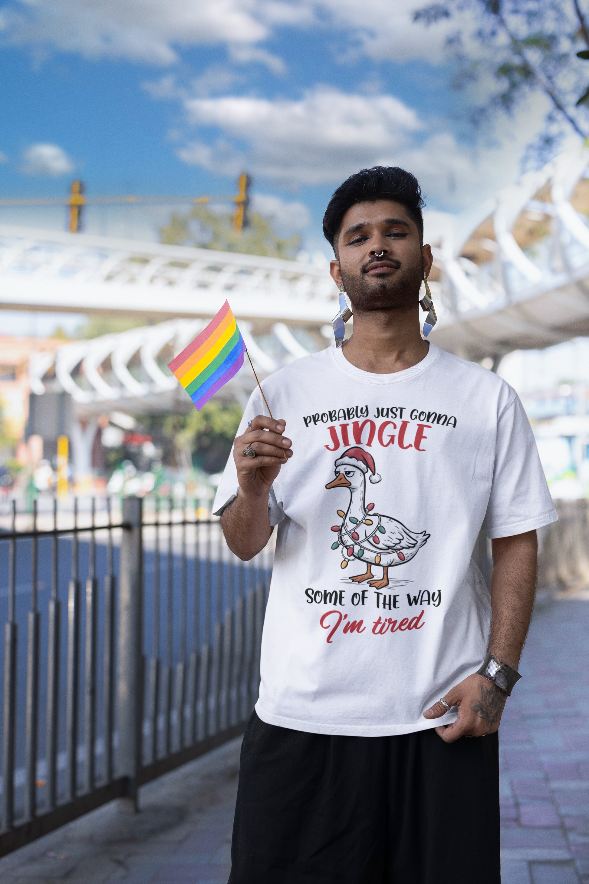 Funny Christmas Goose T-Shirt - Probably Just Gonna Jingle I'm Tired Holiday Tee