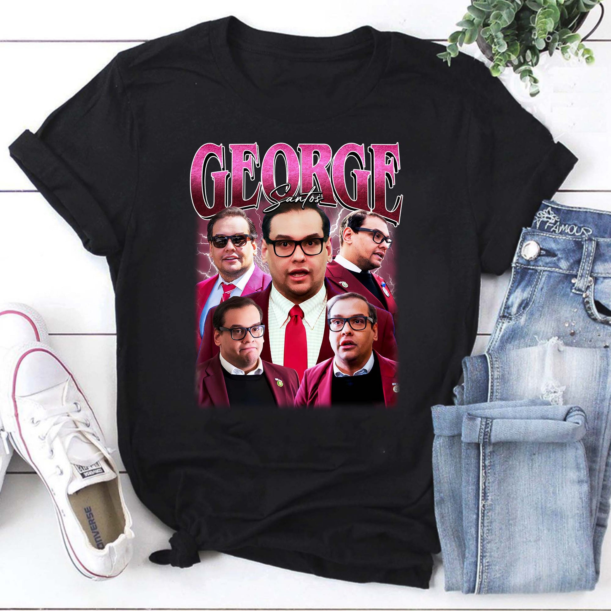 Express your passion and add a touch of retro flair with this unique George Santos graphic t-shirt.