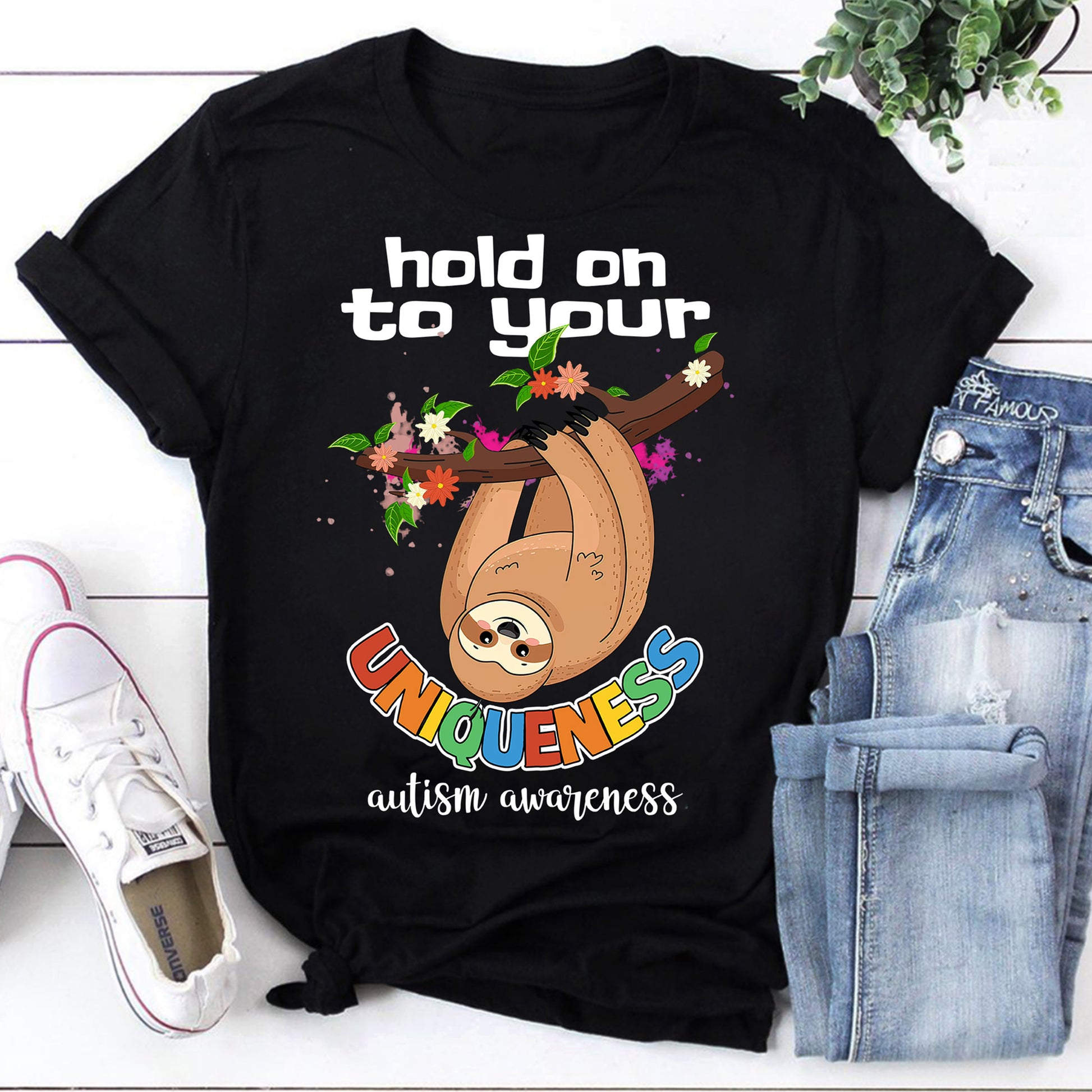 Hold On To Your Uniqueness Sloth Shirt Autism Awareness Tee