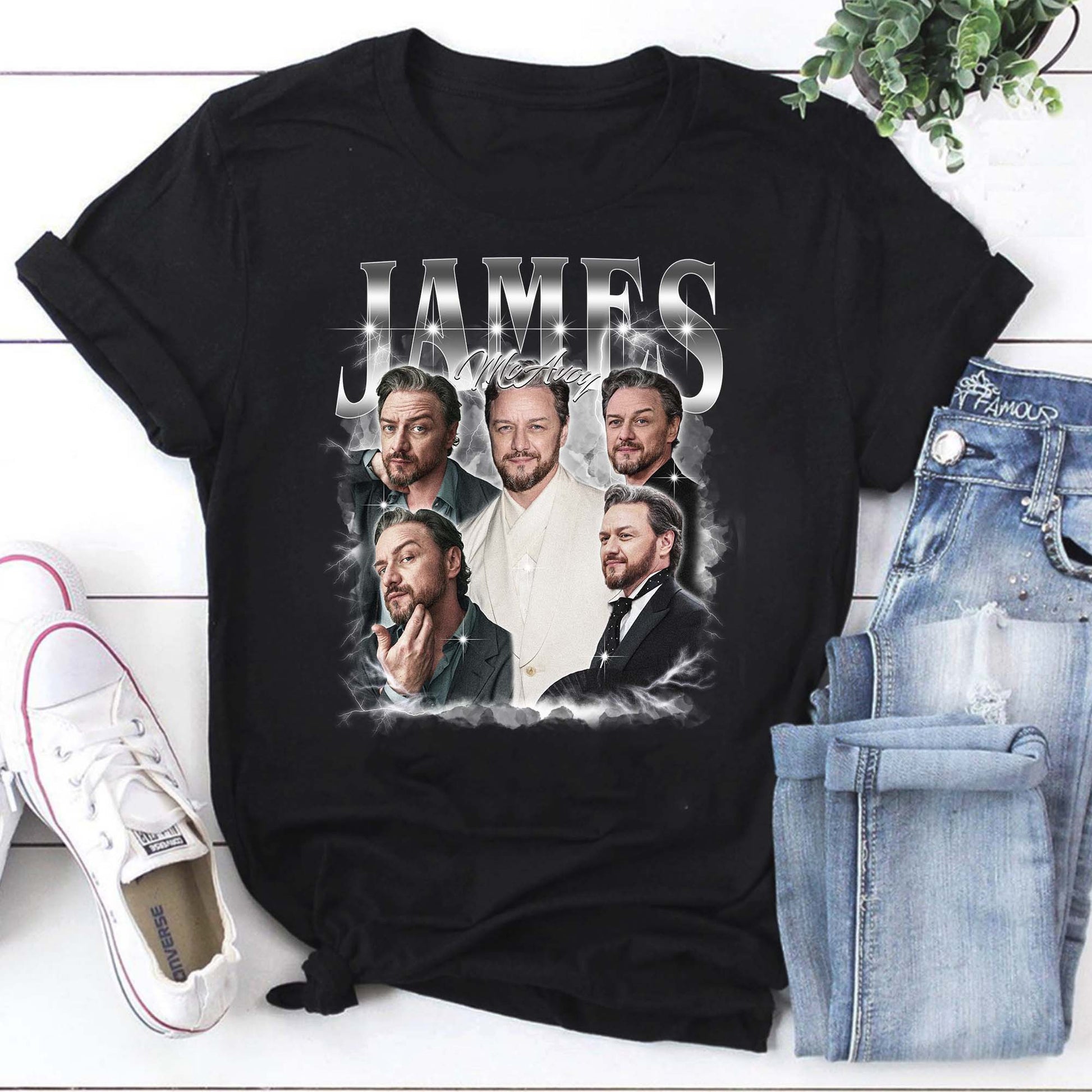Show off your admiration for James McAvoy with this sleek black hoodie featuring a unique photo collage design. Perfect for fans who want to add a touch of personality and fandom to their casual wardrobe.