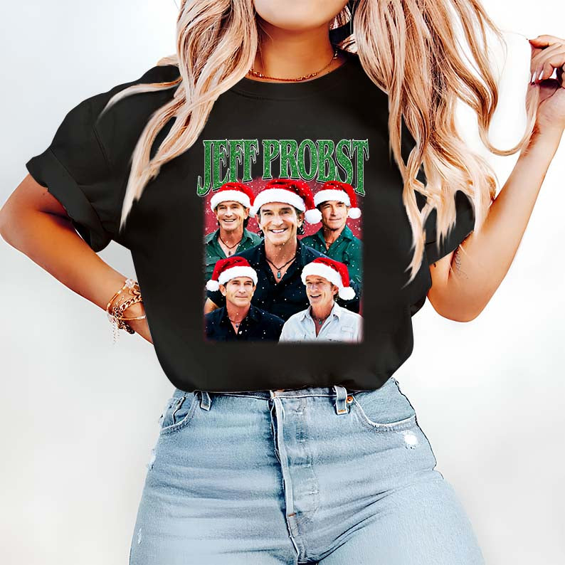 Get cozy and festive this season with our Jeff Probst Christmas Hoodie, featuring a vibrant collage of Jeff Probst wearing Santa hats. This holiday sweatshirt is perfect for fans of the Survivor host who want a fun and cheerful look for winter celebrations.