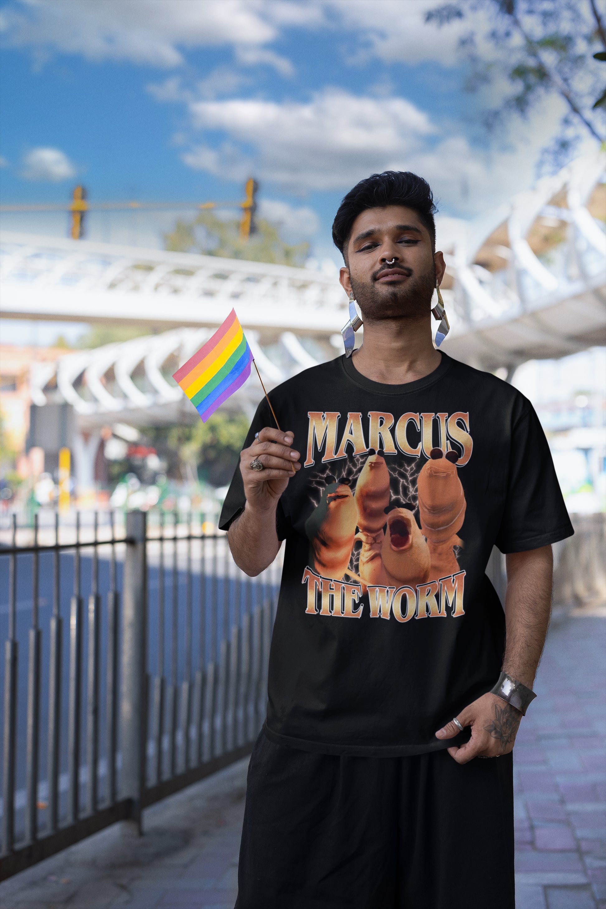 Show off your quirky style with this funny and slightly creepy Marcus The Worm graphic sweatshirt. Featuring four animated worm characters with expressive faces and the bold text "MARCUS THE WORM," this design is sure to catch attention and spark conversations.