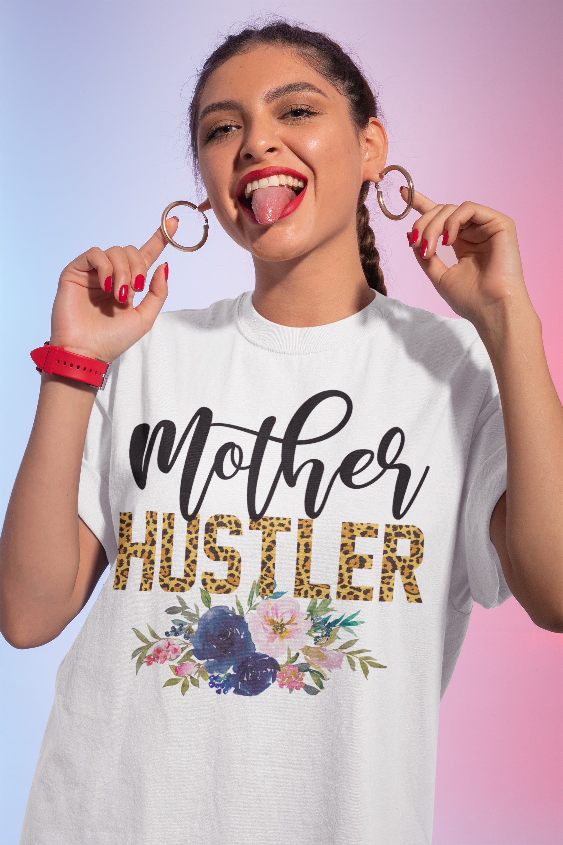 Celebrate the unstoppable energy of moms who hustle hard with this cozy white sweatshirt. Featuring the bold phrase "Mother Hustler" in striking leopard print and elegant script, accented by a beautiful floral arrangement, this sweatshirt is designed for confident, hardworking moms.