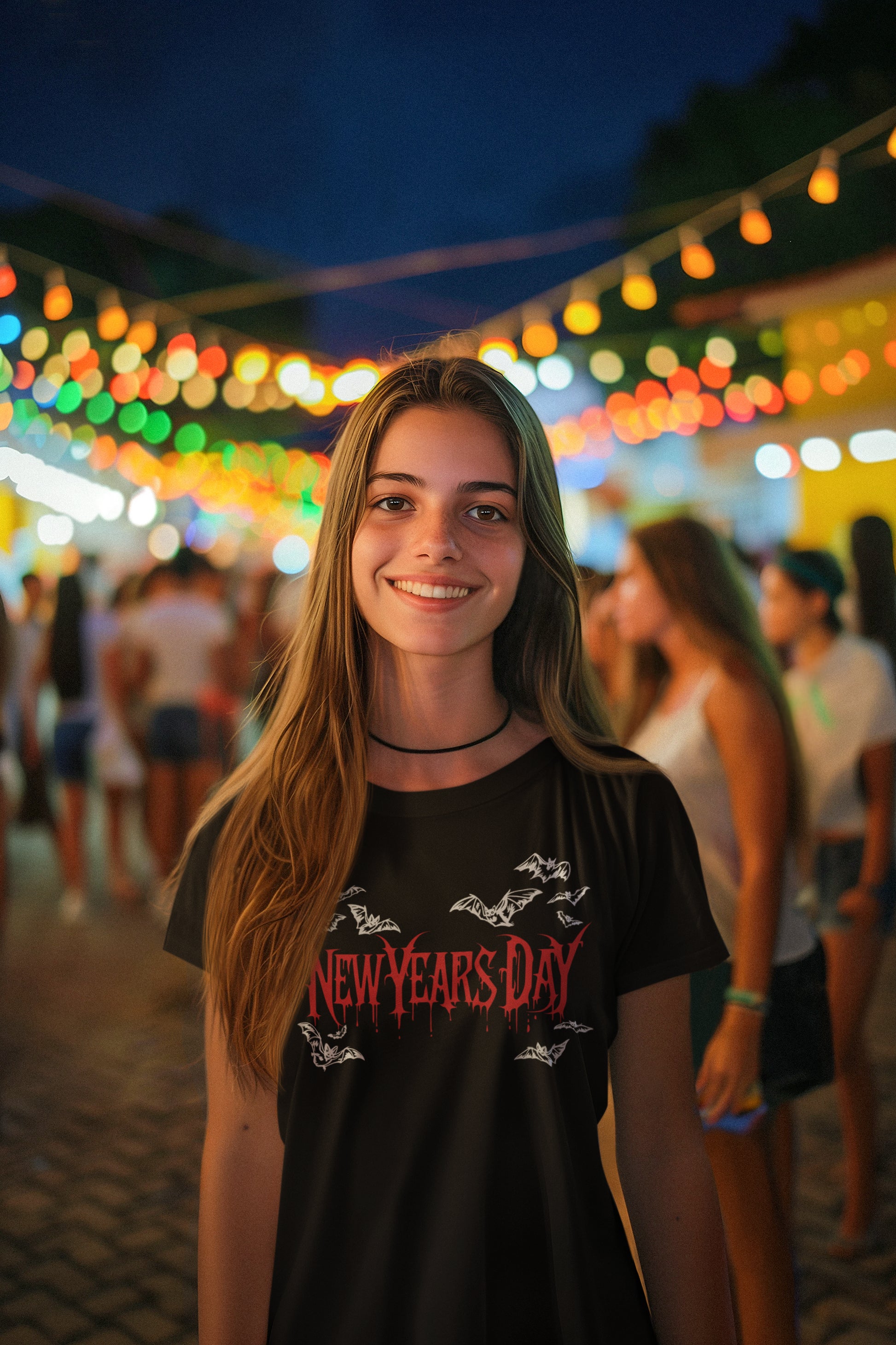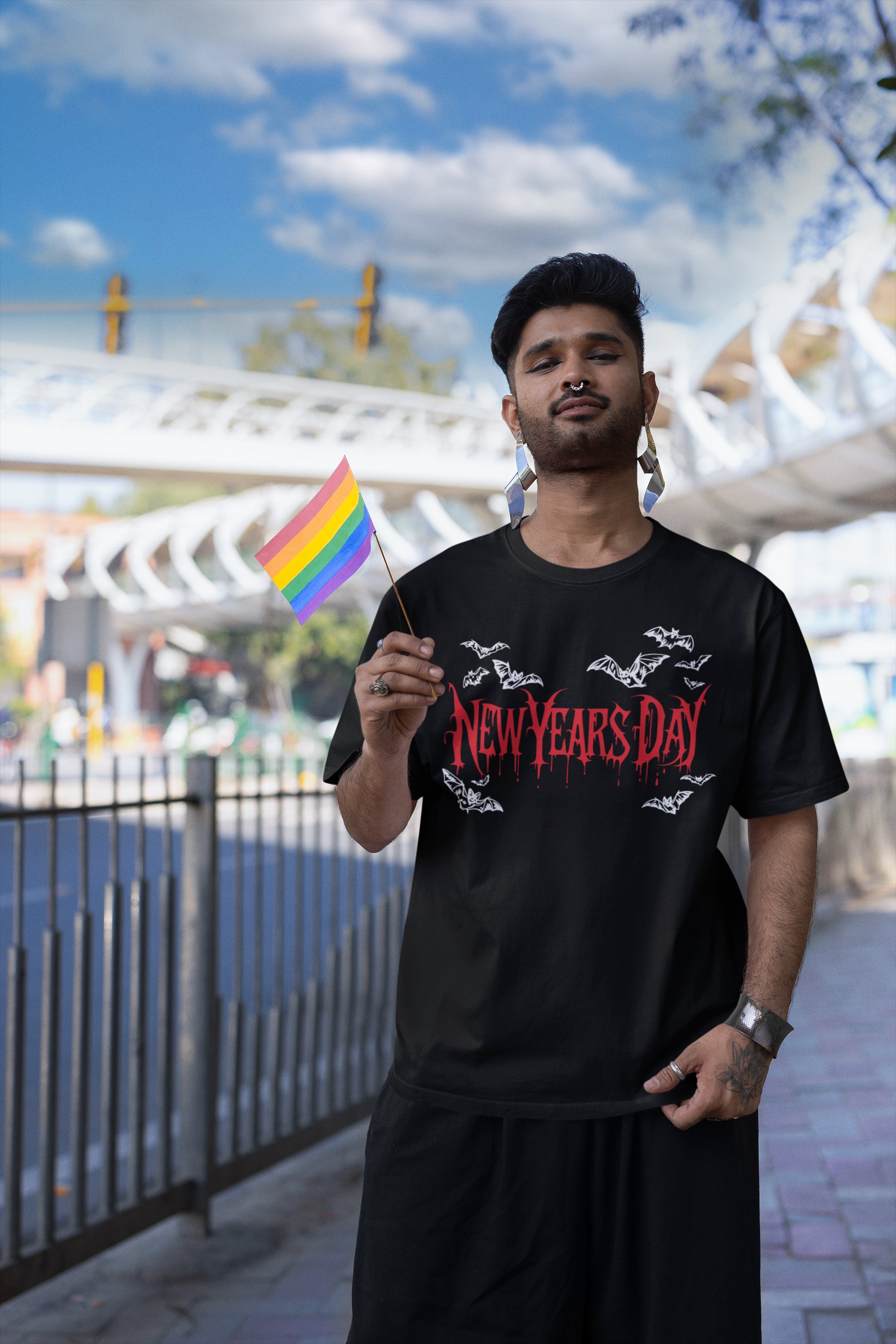 Get ready to celebrate the New Year with an edge in this unique gothic-style hoodie. Featuring bold, dripping red text that reads 'New Years Day', surrounded by white bats in flight, this sweatshirt brings a dark, mysterious vibe perfect for fans of gothic fashion and alternative holidays.