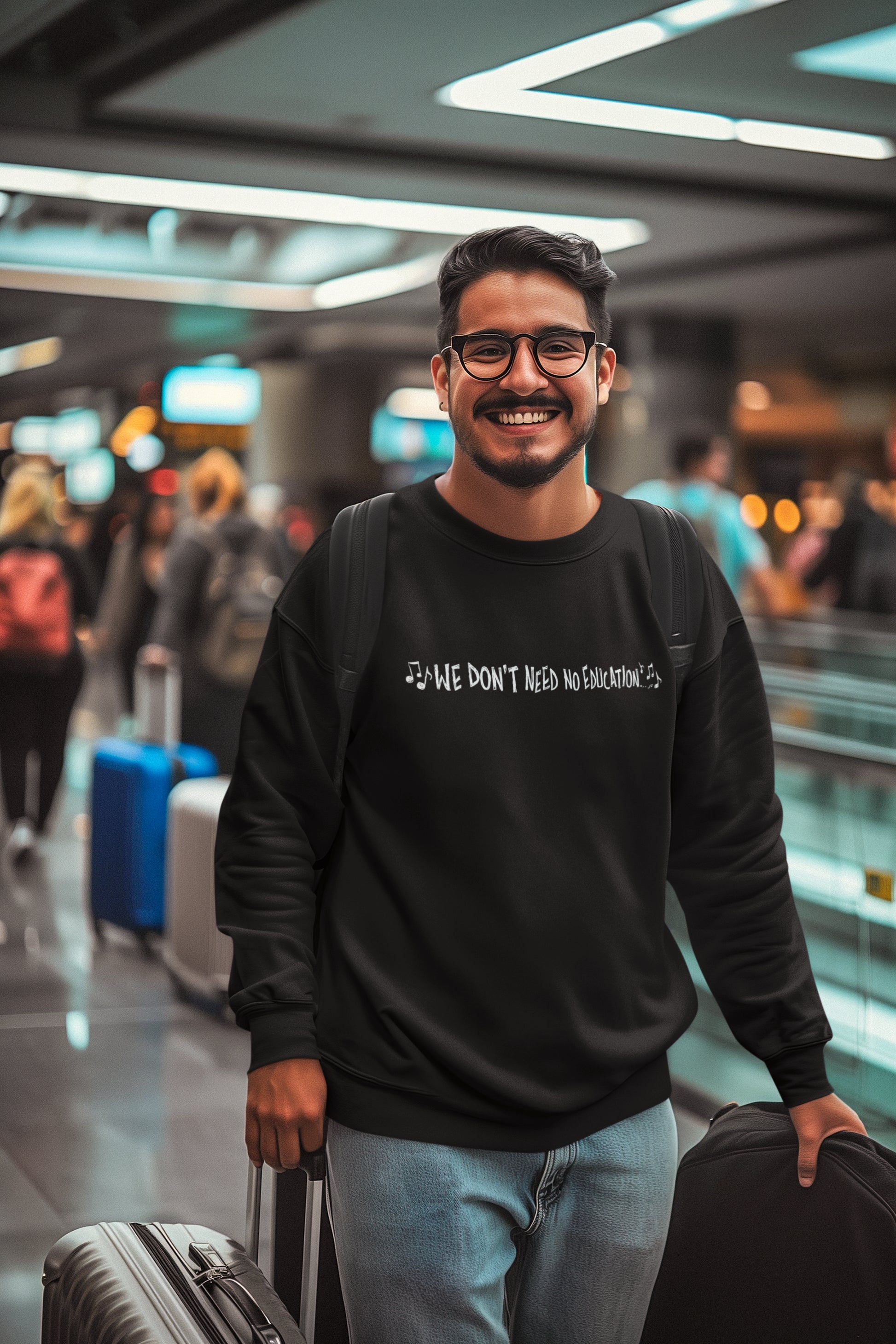 Show your love for timeless rock anthems with our "We Don't Need No Education" t-shirt, inspired by the legendary Pink Floyd song. This black tee features a clean, embroidered lyric phrase combined with musical notes, making it a perfect statement piece for music lovers and vintage band fans alike.