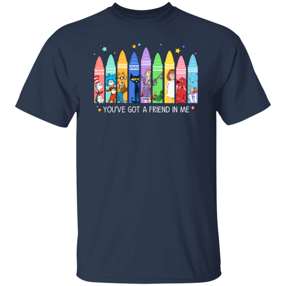 You've Got a Friend in Me Teacher Shirt, Cute Crayon Book Character Tee for Back to School
